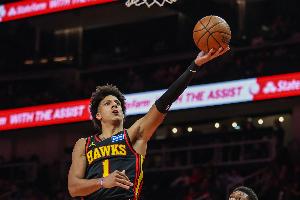 首节比赛,老鹰球员杰伦·约翰逊表现出色,进攻端手感火热,在9分钟的时间里,投篮6中5,三分球1中0,罚球1中0,高效拿下10分1篮板1助攻的数据,正负值+6。