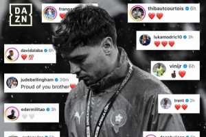 24直播网01月20日讯 非洲杯决赛,摩洛哥加时赛0-1憾负塞内加尔。球队在常规时间最后阶段获得点球,但迪亚斯的勺子点球被扑出,赛后他发文致歉。众多足坛球星如贝林厄姆、维尼修斯等纷纷社媒留言,表达对他的支持。