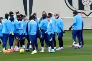 体育资讯1月24日讯 据记者Víctor Navarro报道,巴萨训练之前为库巴西庆生。
