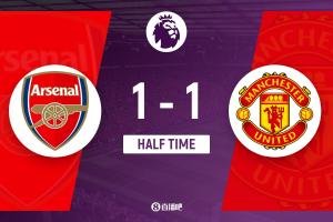 半场结束,阿森纳1-1曼联。