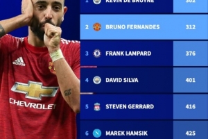 24直播网01月26日讯 曼联B费英超直接参与进球达200球,以312场位居新世纪五大联赛中场球员次席,仅次于德布劳内的302场。他还助攻多尔古反超比分,帮助曼联战阿森纳。