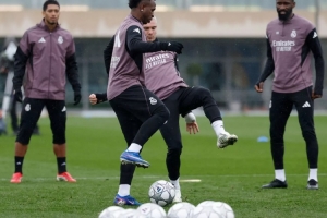 24直播网01月26日讯 皇马备战欧冠客战本菲卡。球队今日进行训练,包括视频分析、健身房及草坪上的传球、控球和射门练习,最后进行了小场对抗赛。部分球员如吕迪格、姆巴佩等进行了单独或中等强度训练。