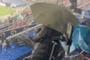 邮报报道:诺坎普球场遭遇暴雨洗礼,记者们的电子设备亦未能幸免,悉数被淋湿。