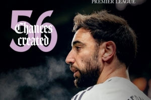 曼联晒B费数据海报,他本赛季联赛创造56次机会,送出8记助攻,两项数据均在英超领跑。