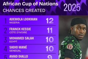 体育资讯1月9日讯 非洲杯激战正酣,数据机构squawka也统计了本届非洲杯创造机会情况,卢克曼力压群雄居首。