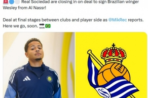 据报道,皇家社会与利雅得胜利以及球员方面已进入谈判的最后阶段,这笔交易即将完成 ,很快可以Here we go!