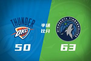 24直播网01月30日讯 1月30日NBA常规赛,森林狼半场63-50领先雷霆。爱德华兹砍下12分,亚历山大贡献13分5助。森林狼多点开花,凭借出色的团队配合和防守,在半场结束时占据主动。
