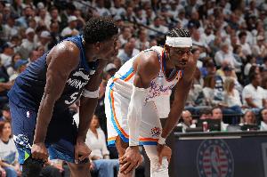 此役,爱德华兹出战34分37秒,投篮17中9,三分10中4,罚球5中4,得到26分5篮板5助攻2抢断1盖帽;亚历山大在31分钟的时间里,投篮18中12,三分球2中1,罚球5中5,空砍30分6篮板8助攻1抢断。