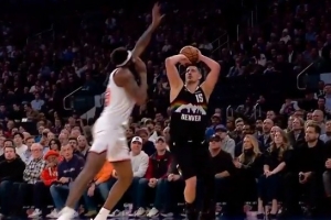 GIF-米切尔·罗宾逊残暴大帽约基奇三分