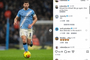 鲁本·迪亚斯伤愈后首次在主场出战,他首发踢满全场,赛后鲁本·迪亚斯社媒写道:“想念伊蒂哈德球场,我们再次出发,一场一场来。”