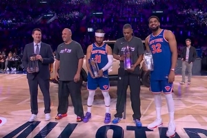 体育资讯2月15日讯洛杉矶全明星单项赛今日进行,第二项比赛是投篮之星,决赛由卡梅隆队对阵尼克斯队,率先登场的卡梅隆队神准命中3记四分球拿下38分,顶住压力的尼克斯队表现更加凶猛,他们各种狂轰乱炸直接抢下47分夺冠。