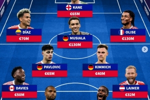 24直播网02月20日讯 《转会市场》预测拜仁本赛季剩余时间的主力阵容。该阵容为4231阵型,总身价6.86亿欧元。前场将由凯恩领衔,与迪亚斯、伤愈的穆西亚拉、奥利塞组成“凯迪拉克”四重奏。后防由戴维斯、于帕梅卡诺等坐镇,门将位置由诺伊尔把守。