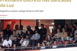 体育资讯02月22日讯 据葡媒《记录报》报道,身陷种族歧视风波的普雷斯蒂安尼本轮葡超因累积黄牌停赛,但他仍现身光明球场,现场观看球队比赛。