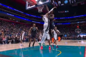 下一篇: 卡斯尔强行突破坎宁安防守完成反手上篮,但未能命中并重重摔倒在地,场面令人揪心。