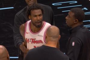 24直播网03月01日讯 火箭主帅乌度卡与球员伊森在一次比赛中爆发激烈争吵。起因是伊森在一次退防失误后,乌度卡暂停时批评了他,但伊森情绪激动地大喊“这能怪我?”,认为责任不在自己,场面一度失控,需要助教拉开。