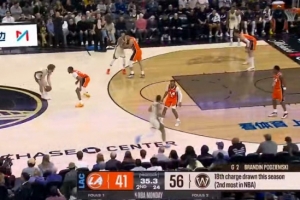 (布伦森20次造对手进攻犯规联盟最多)
