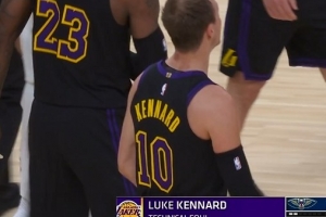 比赛第三节时,湖人后卫卢克·肯纳德因裁判吹罚防守犯规后抱怨吃到1T。对此,湖人解说员略有些崩溃的评价道:“别抱怨了。闭上嘴,专心打球啊!”