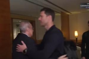 皇马TV正在播放西超杯决赛开赛前,弗洛伦蒂诺与球队握手、拥抱的画面,而轮到阿隆索拥抱的时候,皇马TV紧急切断了画面。
