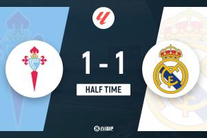 24直播网03月07日讯 3月7日,西甲第27轮,皇马客场1-1战平塞尔塔。上半场,琼阿梅尼首球助皇马领先,但阿诺德防守失误,被塞尔塔扳平比分。双方上半场战罢,暂时1-1平局。