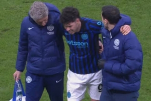 24直播网03月09日讯 在意甲米兰德比战中,国米后卫巴斯托尼因与拉比奥特的激烈对抗导致左腿受伤,被迫离场。他赛后痛苦离场,需伤情观察。