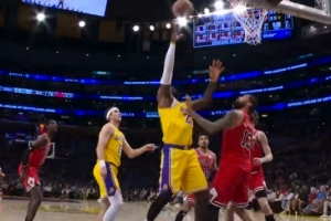 GIF-詹姆斯抢下进攻篮板 成功打成2+1