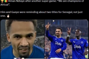 非洲杯冠军此前被改判给了摩洛哥,引发塞内加尔方面的不满,在埃弗顿3-0击败切尔西后,恩迪亚耶对着镜头说道:“我们是非洲冠军!”