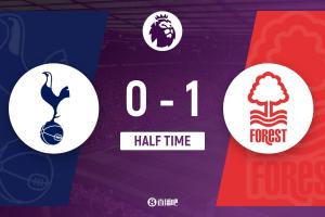 24直播网03月22日讯 3月22日英超,热刺主场0-1憾负诺丁汉森林。上半场,伊戈尔·热苏斯头球破门助森林领先。热刺虽由特尔远射击中横梁制造威胁,但未能改写比分,半场比分0-1。