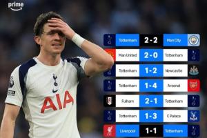 24直播网03月23日讯 英超第31轮,热刺0-3惨败诺丁汉森林,仅领先降级区1分,深陷保级危机。近8轮联赛,热刺除战平曼城、利物浦外,其余6场悉数告负,状态低迷,战绩堪忧。