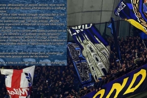 国米北看台写道:“国际米兰的球迷们,我们正处于一个微妙时期。近期的失利和充满争议的裁判判罚正试图动摇我们的信念。现在比以往任何时候都更需要保持团结,挺起胸膛,以‘孤军奋战’的姿态带领球队冲破风暴。”