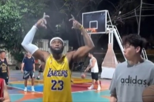 湖人vs掘金詹姆斯摊手视频