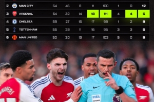 24直播网04月10日讯 英超名哨奥利弗对阿森纳的执法引发争议。数据显示,他给阿森纳出示的黄牌(111张)和红牌(4张)均居英超之最,而点球数(5个)却是BIG6中最少的。尽管执法场次与曼城相同,却从未给曼城红牌,此番对比让枪手球迷感到不公。