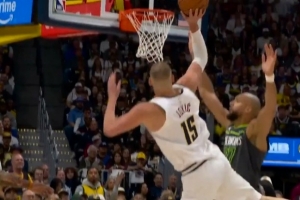下一篇: 戈贝尔强硬挤开约基奇,暴力上篮得手,随后又抢下前场板,双手完成补扣!