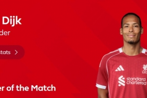 本场比赛范戴克在伤停补时阶段打进绝杀,此外还有7次解围,赛后当选英超官方球迷票选全场最佳球员。